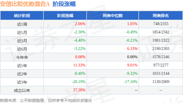 从业绩表现来看,安信比较优势混合基金过去一年净值涨幅为9.65%,在同类基金中排名606/2261,同类基金过去一年净值涨幅中位数为5.1%。而基金过去一年的最大回撤为-18.44%,成立以来的最大回撤为-36.76%。