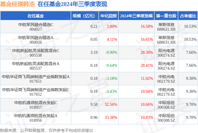 中航军民融合精选A现任基金经理为韩浩。其中在任基金经理韩浩已从业6年又319天,2018年2月9日正式接手管理中航军民融合精选A,任职期间累计回报为31.01%。目前还管理着8只基金产品(包括A类和C类),其中本季度表现最佳的基金为中航新起航灵活配置混合A(005537),季度净值涨幅为28.41%。
