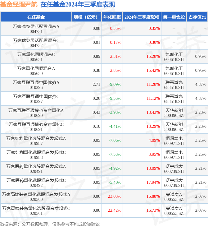 从业绩表现来看,万家量化同顺混合C基金过去一年净值涨幅为3.63%,在同类基金中排名1460/2261,同类基金过去一年净值涨幅中位数为5.1%。而基金过去一年的最大回撤为-26.16%,成立以来的最大回撤为-55.19%。
