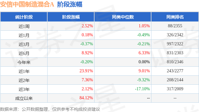 从业绩表现来看,安信中国制造2025混合基金过去一年净值涨幅为20.59%,在同类基金中排名146/2261,同类基金过去一年净值涨幅中位数为5.1%。而基金过去一年的最大回撤为-16.06%,成立以来的最大回撤为-33.08%。