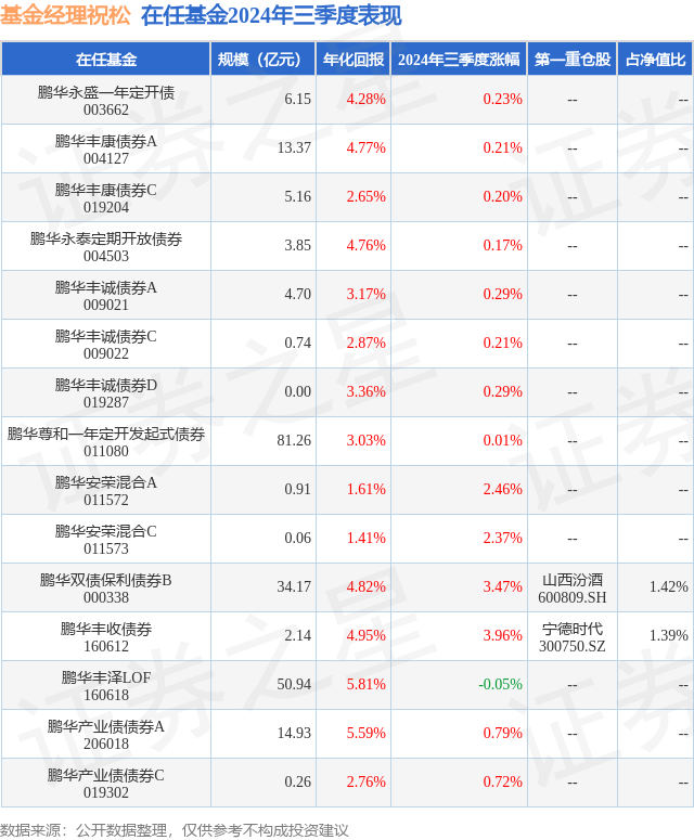 证券之星消息,日前鹏华双债保利债券B基金公布三季报,2024年三季度最新规模34.17亿元,季度净值涨幅为3.47%。