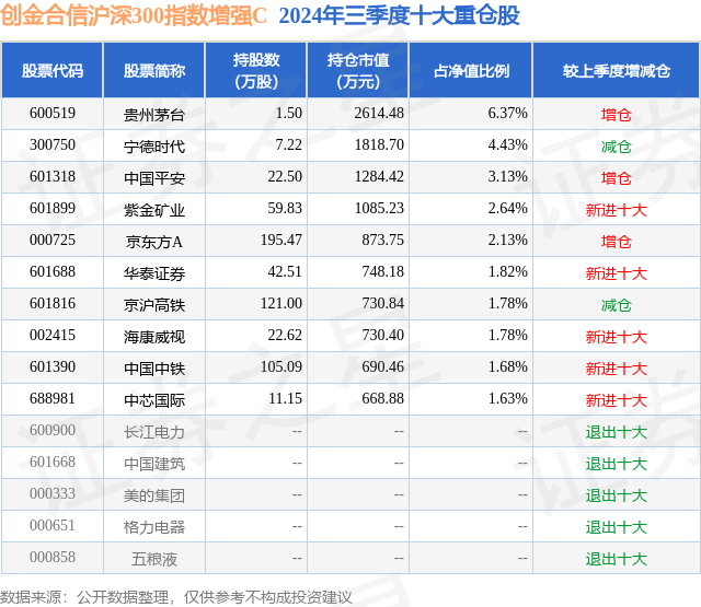 证券之星消息,日前创金合信沪深300指数增强C基金公布三季报,2024年三季度最新规模2.5亿元,季度净值涨幅为16.45%。