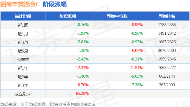 从业绩表现来看,招商丰美混合C基金过去一年净值涨幅为10.55%,在同类基金中排名609/2261,同类基金过去一年净值涨幅中位数为5.1%。而基金过去一年的最大回撤为-10.16%,成立以来的最大回撤为-15.23%。