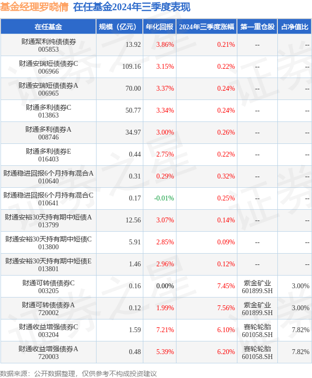 证券之星消息,日前财通收益增强债券C基金公布三季报,2024年三季度最新规模1.59亿元,季度净值涨幅为6.1%。