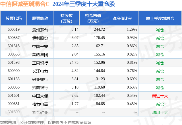 证券之星消息,日前中信保诚至瑞混合C基金公布三季报,2024年三季度最新规模0.57亿元,季度净值涨幅为3.53%。