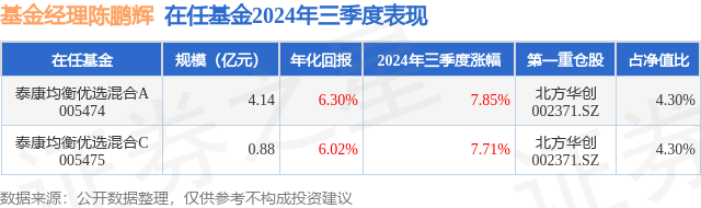 证券之星消息,日前泰康均衡优选混合C基金公布三季报,2024年三季度最新规模0.88亿元,季度净值涨幅为7.71%。