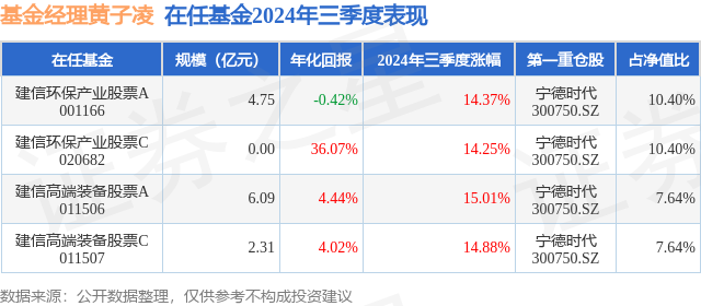 建信环保产业股票A现任基金经理为黄子凌。其中在任基金经理黄子凌已从业3年又184天,2024年3月29日正式接手管理建信环保产业股票A,任职期间累计回报为9.45%。目前还管理着4只基金产品(包括A类和C类),其中本季度表现最佳的基金为建信高端装备股票A(011506),季度净值涨幅为15.01%。