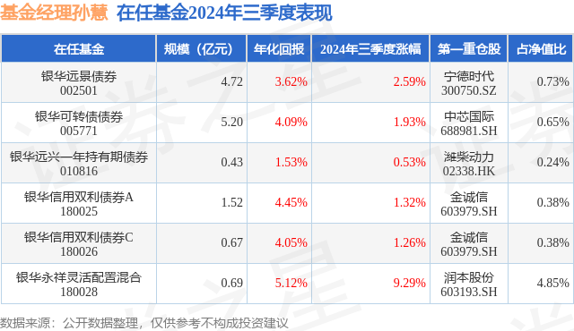 证券之星消息,日前银华可转债债券基金公布三季报,2024年三季度最新规模5.2亿元,季度净值涨幅为1.93%。