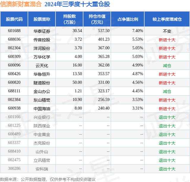 证券之星消息,日前信澳新财富混合基金公布三季报,2024年三季度最新规模0.73亿元,季度净值涨幅为5.29%。