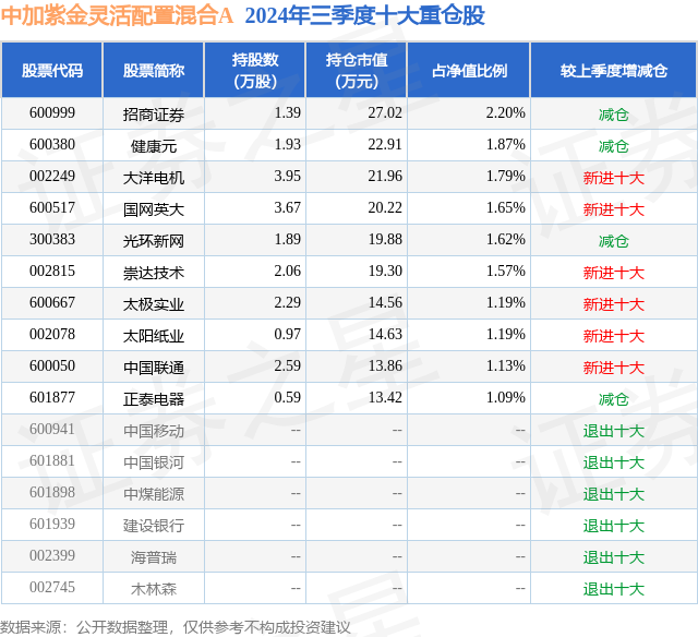 证券之星消息,日前中加紫金灵活配置混合A基金公布三季报,2024年三季度最新规模0.1亿元,季度净值涨幅为14.92%。