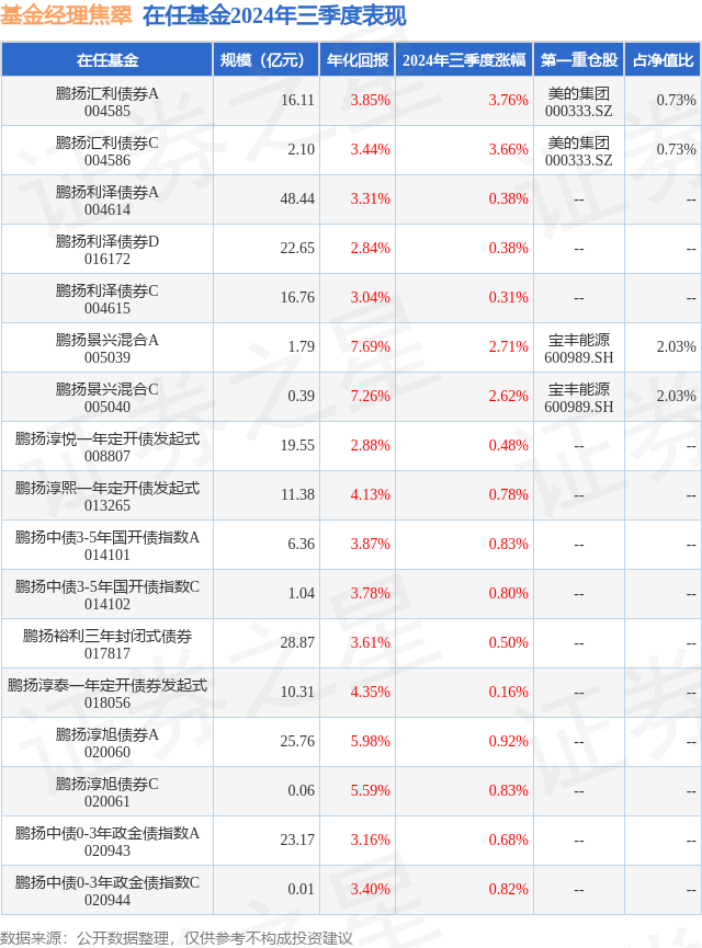 证券之星消息,日前鹏扬景兴混合A基金公布三季报,2024年三季度最新规模1.79亿元,季度净值涨幅为2.71%。