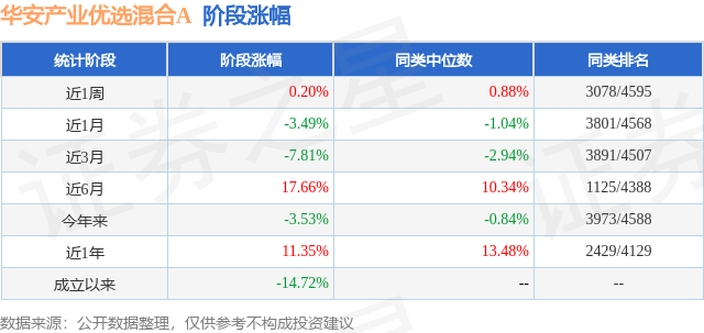 从业绩表现来看,华安产业优选混合A基金过去一年净值涨幅为4.97%,在同类基金中排名2424/3979,同类基金过去一年净值涨幅中位数为5.4%。而基金过去一年的最大回撤为-33.08%,成立以来的最大回撤为-37.01%。