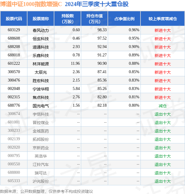 证券之星消息,日前博道中证1000指数增强C基金公布三季报,2024年三季度最新规模0.06亿元,季度净值涨幅为11.62%。