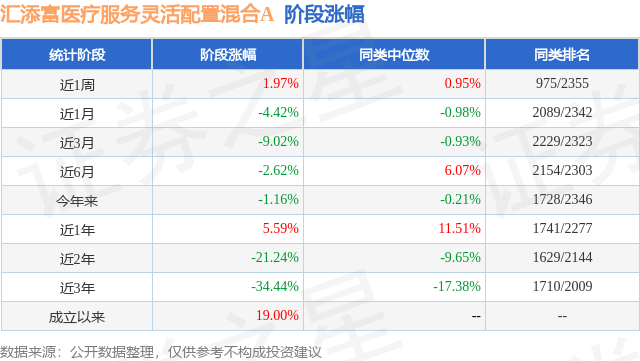 从业绩表现来看,汇添富医疗服务灵活配置混合A基金过去一年净值涨幅为11.82%,在同类基金中排名507/2261,同类基金过去一年净值涨幅中位数为5.1%。而基金过去一年的最大回撤为-23.76%,成立以来的最大回撤为-61.44%。