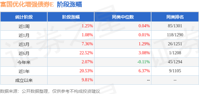 从业绩表现来看,富国优化增强债券E基金过去一年净值涨幅为6.82%,在同类基金中排名262/1063,同类基金过去一年净值涨幅中位数为4.0%。而基金过去一年的最大回撤为-15.22%,成立以来的最大回撤为-15.43%。