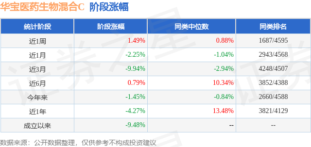 从业绩表现来看,华宝医药生物混合C基金过去一年净值涨幅为-0.59%,在同类基金中排名2911/3979,同类基金过去一年净值涨幅中位数为5.4%。而基金过去一年的最大回撤为-25.87%,成立以来的最大回撤为-25.87%。