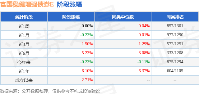 从业绩表现来看,富国稳健增强债券E基金过去一年净值涨幅为3.5%,在同类基金中排名640/1063,同类基金过去一年净值涨幅中位数为4.0%。而基金过去一年的最大回撤为-3.39%,成立以来的最大回撤为-4.55%。