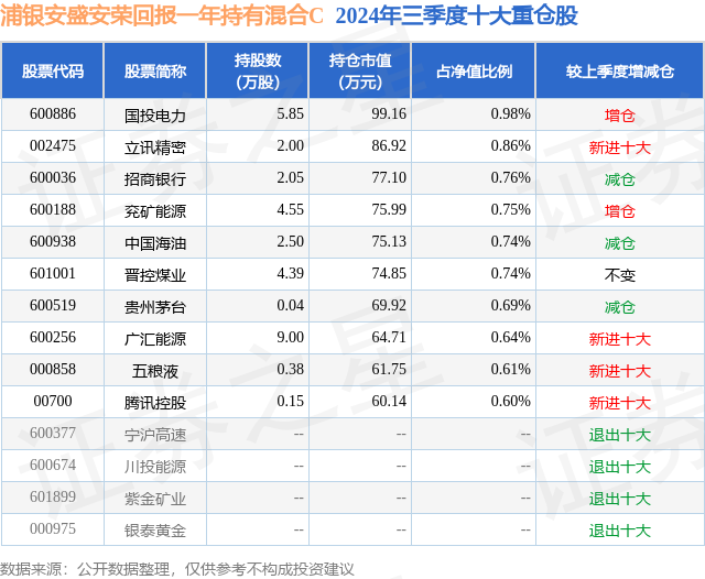 证券之星消息,日前浦银安盛安荣回报一年持有混合C基金公布三季报,2024年三季度最新规模0.07亿元,季度净值涨幅为-0.46%。