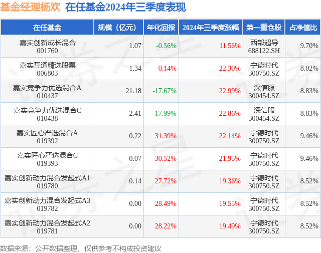 证券之星消息,日前嘉实创新成长混合基金公布三季报,2024年三季度最新规模1.07亿元,季度净值涨幅为11.56%。