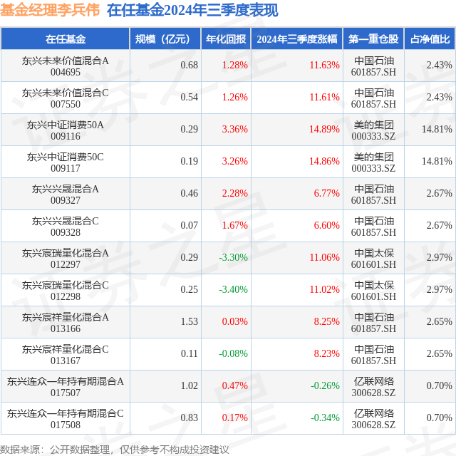 证券之星消息,日前东兴连众一年持有期混合A基金公布三季报,2024年三季度最新规模1.02亿元,季度净值涨幅为-0.26%。