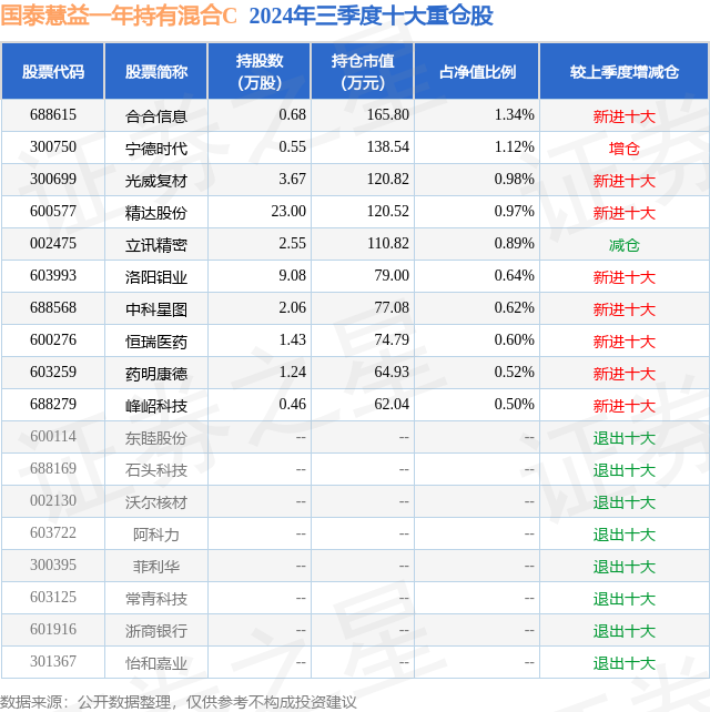 证券之星消息,日前国泰慧益一年持有混合C基金公布三季报,2024年三季度最新规模0.17亿元,季度净值涨幅为3.74%。
