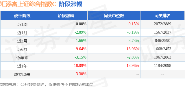 从业绩表现来看,汇添富上证综合指数C基金过去一年净值涨幅为11.62%,在同类基金中排名1130/1981,同类基金过去一年净值涨幅中位数为13.77%。而基金过去一年的最大回撤为-11.97%,成立以来的最大回撤为-17.47%。