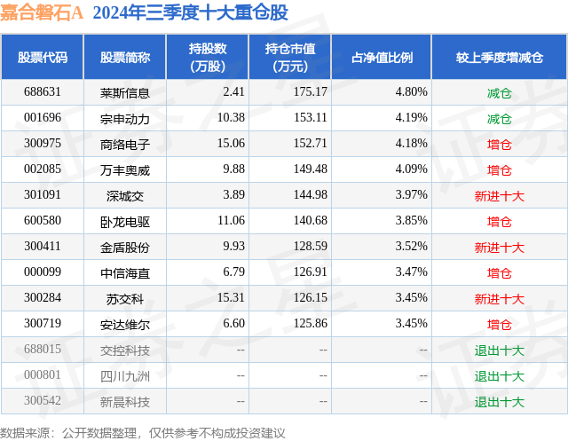 证券之星消息,日前嘉合磐石A基金公布三季报,2024年三季度最新规模0.07亿元,季度净值涨幅为2.91%。