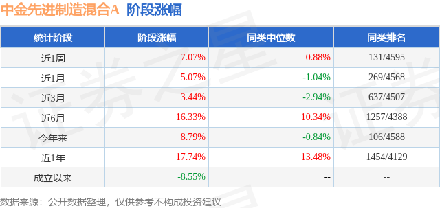 证券之星消息,日前中金先进制造混合A基金公布三季报,2024年三季度最新规模0.08亿元,季度净值涨幅为6.91%。