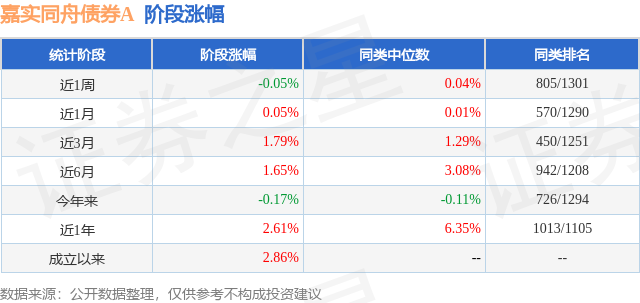 从业绩表现来看,嘉实同舟债券A基金过去一年净值涨幅为0.73%,在同类基金中排名913/1063,同类基金过去一年净值涨幅中位数为4.0%。而基金过去一年的最大回撤为-1.57%,成立以来的最大回撤为-1.57%。
