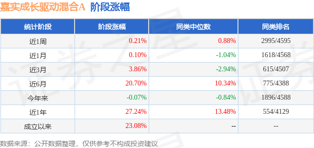 从业绩表现来看,嘉实成长驱动混合A基金过去一年净值涨幅为19.28%,在同类基金中排名405/3979,同类基金过去一年净值涨幅中位数为5.4%。而基金过去一年的最大回撤为-20.48%,成立以来的最大回撤为-20.48%。