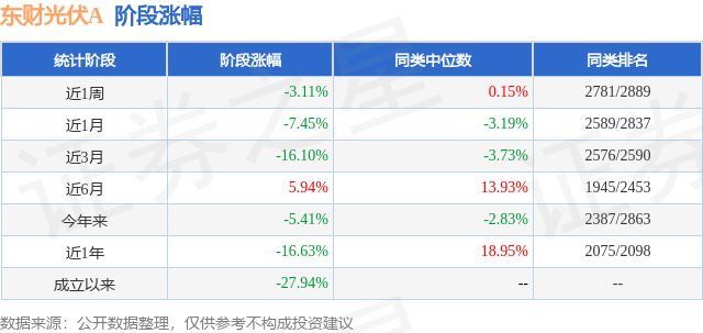 从业绩表现来看,东财光伏A基金过去一年净值涨幅为-2.33%,在同类基金中排名1859/1981,同类基金过去一年净值涨幅中位数为13.77%。而基金过去一年的最大回撤为-33.66%,成立以来的最大回撤为-36.67%。