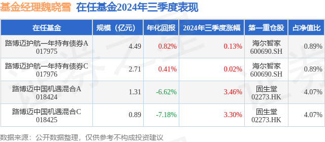 证券之星消息,日前路博迈中国机遇混合C基金公布三季报,2024年三季度最新规模0.89亿元,季度净值涨幅为3.3%。