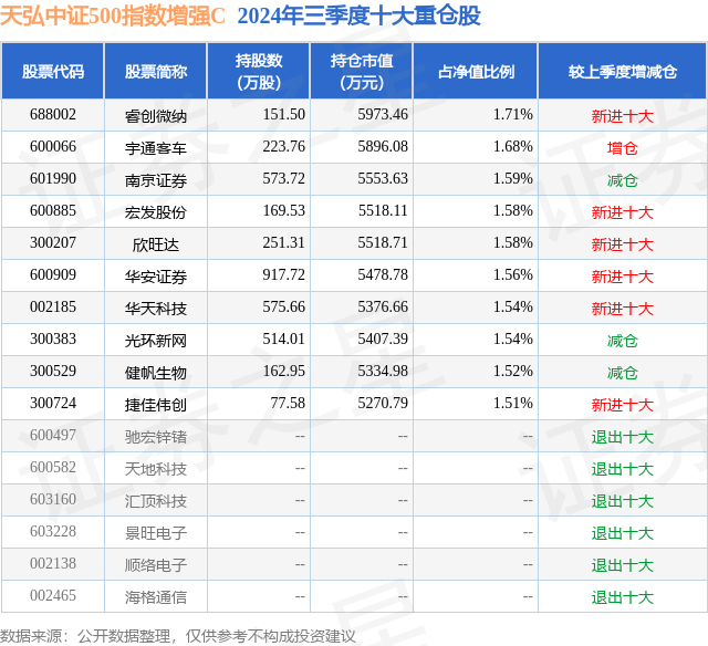 证券之星消息,日前天弘中证500指数增强C基金公布三季报,2024年三季度最新规模11.53亿元,季度净值涨幅为12.76%。