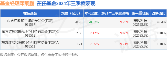 证券之星消息,日前东方红欣和积极3个月持有混合(FOF)C基金公布三季报,2024年三季度最新规模2.56亿元,季度净值涨幅为9.6%。