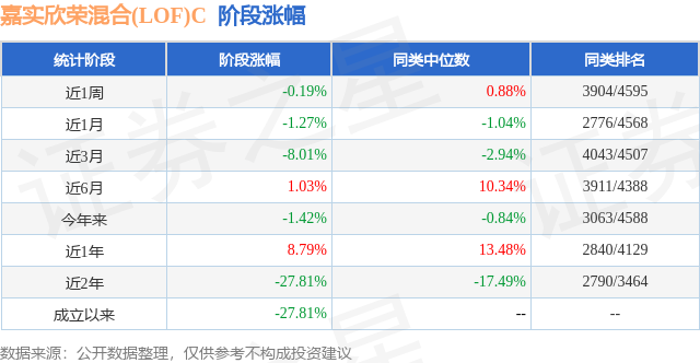 从业绩表现来看,嘉实欣荣混合(LOF)C基金过去一年净值涨幅为2.21%,在同类基金中排名2481/3979,同类基金过去一年净值涨幅中位数为5.4%。而基金过去一年的最大回撤为-18.08%,成立以来的最大回撤为-34.92%。