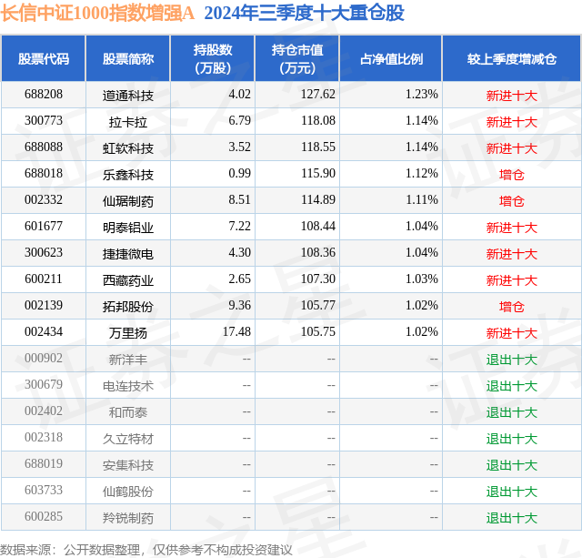 证券之星消息,日前长信中证1000指数增强A基金公布三季报,2024年三季度最新规模0.48亿元,季度净值涨幅为8.84%。
