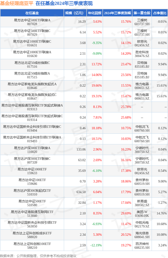 证券之星消息,日前易方达中证家电龙头指数发起式C基金公布三季报,2024年三季度最新规模0.22亿元,季度净值涨幅为15.47%。