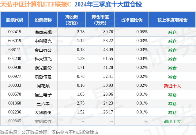 证券之星消息,日前天弘中证计算机ETF联接C基金公布三季报,2024年三季度最新规模14.55亿元,季度净值涨幅为18.55%。