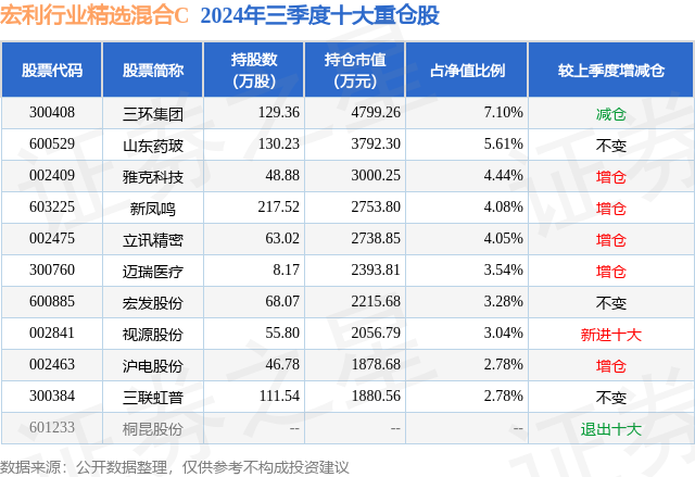证券之星消息,日前宏利行业精选混合C基金公布三季报,2024年三季度最新规模0.14亿元,季度净值涨幅为7.96%。