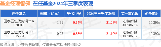 证券之星消息,日前国泰区位优势混合C基金公布三季报,2024年三季度最新规模0.22亿元,季度净值涨幅为21.1%。