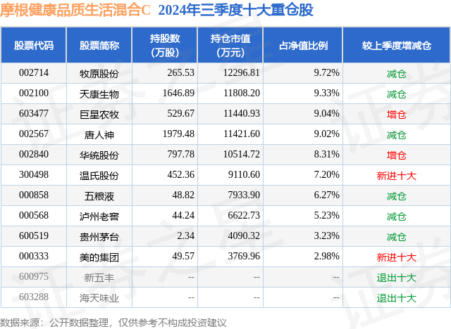 证券之星消息,日前摩根健康品质生活混合C基金公布三季报,2024年三季度最新规模3.69亿元,季度净值涨幅为0.42%。