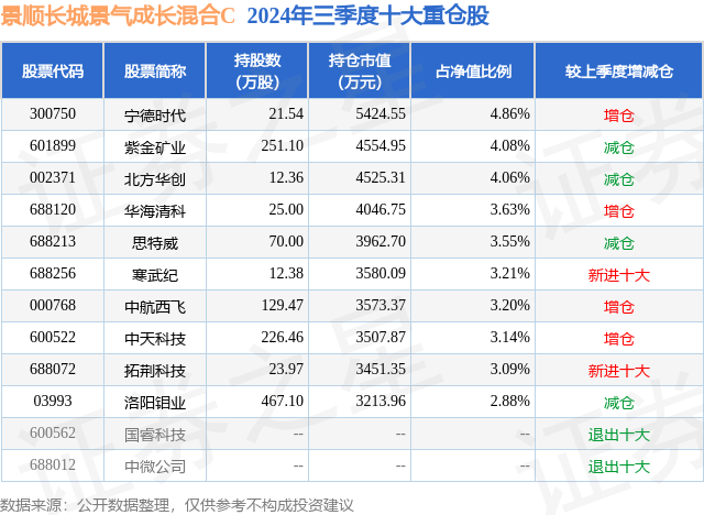 证券之星消息,日前景顺长城景气成长混合C基金公布三季报,2024年三季度最新规模0.03亿元,季度净值涨幅为12.03%。