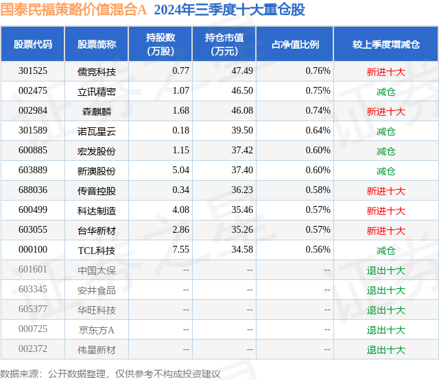 证券之星消息,日前国泰民福策略价值混合A基金公布三季报,2024年三季度最新规模0.62亿元,季度净值涨幅为3.27%。