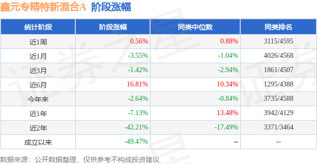 从业绩表现来看,鑫元专精特新混合A基金过去一年净值涨幅为-16.25%,在同类基金中排名3930/3979,同类基金过去一年净值涨幅中位数为5.4%。而基金过去一年的最大回撤为-45.29%,成立以来的最大回撤为-57.74%。