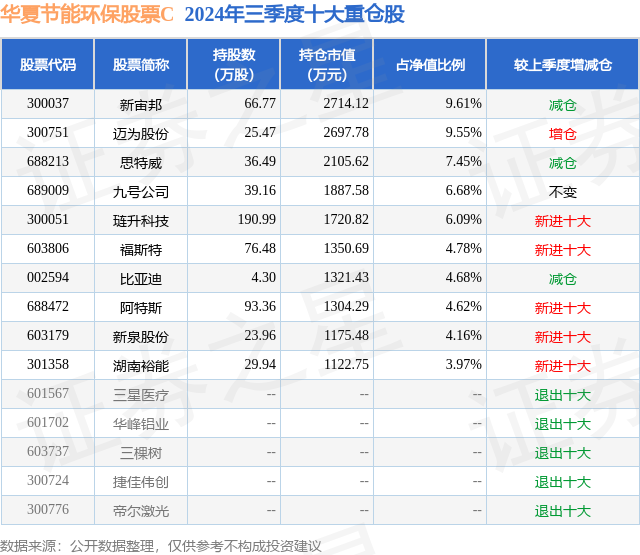证券之星消息,日前华夏节能环保股票C基金公布三季报,2024年三季度最新规模0.12亿元,季度净值涨幅为13.45%。