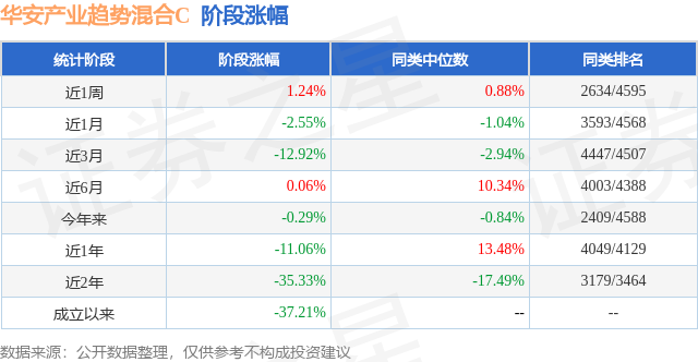 从业绩表现来看,华安产业趋势混合C基金过去一年净值涨幅为-6.91%,在同类基金中排名3617/3979,同类基金过去一年净值涨幅中位数为5.4%。而基金过去一年的最大回撤为-32.04%,成立以来的最大回撤为-41.4%。