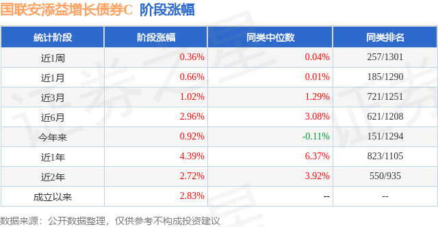证券之星消息,日前国联安添益增长债券C基金公布三季报,2024年三季度最新规模0.0亿元,季度净值涨幅为1.23%。