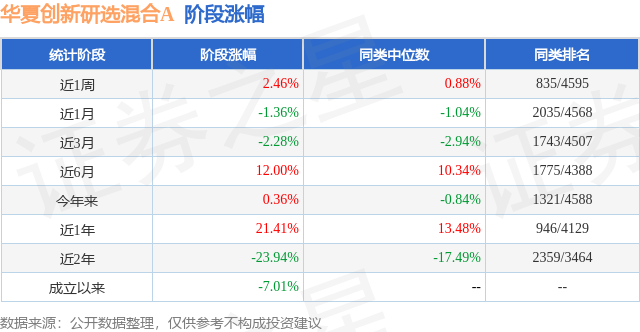 从业绩表现来看,华夏创新研选混合A基金过去一年净值涨幅为5.05%,在同类基金中排名1949/3979,同类基金过去一年净值涨幅中位数为5.4%。而基金过去一年的最大回撤为-27.2%,成立以来的最大回撤为-42.64%。