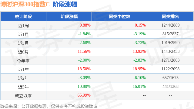 从业绩表现来看,博时沪深300指数C基金过去一年净值涨幅为13.06%,在同类基金中排名1013/1981,同类基金过去一年净值涨幅中位数为13.77%。而基金过去一年的最大回撤为-13.48%,成立以来的最大回撤为-40.74%。