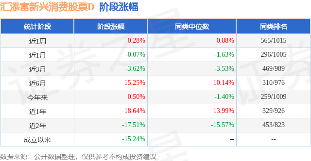 证券之星消息,日前汇添富新兴消费股票D基金公布三季报,2024年三季度最新规模0.0亿元,季度净值涨幅为17.68%。